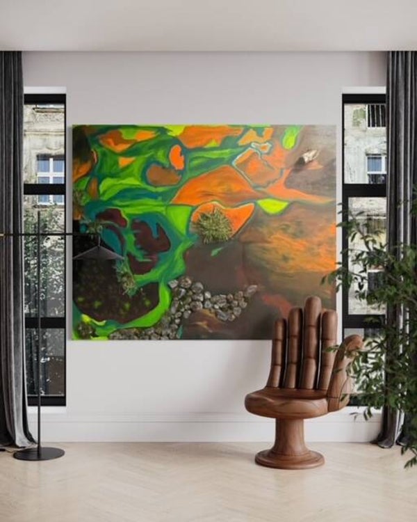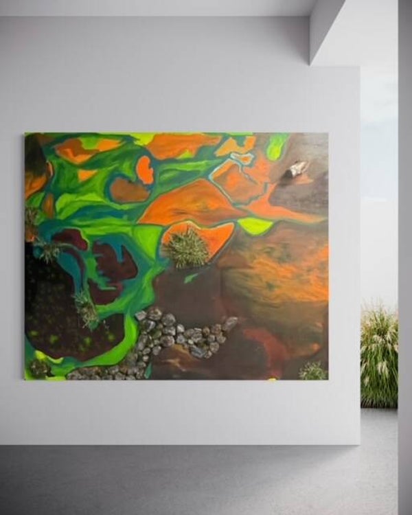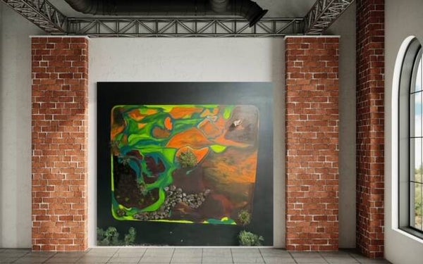 Mixed-media Wood, Grass, Stone, Oil on Stretching Canvas Dimensions: 228cm x 195cm